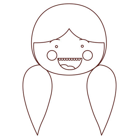 ピグテール髪ベクトル イラスト スケッチ輪郭笑顔式漫画の正面顔女の子のイラスト素材 ベクタ Image