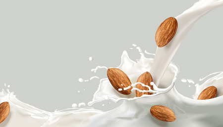 白い背景に隔離された現実的な落下アーモンドナッツパッケージデザイン用アーモンド付きテンプレート3d ベクトルの図 3dのベクターアート素材や画像を多数ご用意 Istock